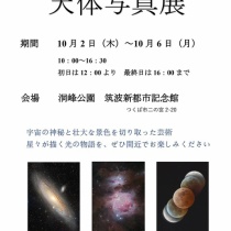 10月2日~6日に私が所属している東葛星見隊の天体写真展が茨城県つくば市の筑波新都市記念館で開催されます。お近くの方、たまたま近辺に行かれる方は是非足をお運びいただけると嬉しいです。日本でトップクラスのアマチュア天体写真家の作品を多数ご鑑賞頂けると思いま ...